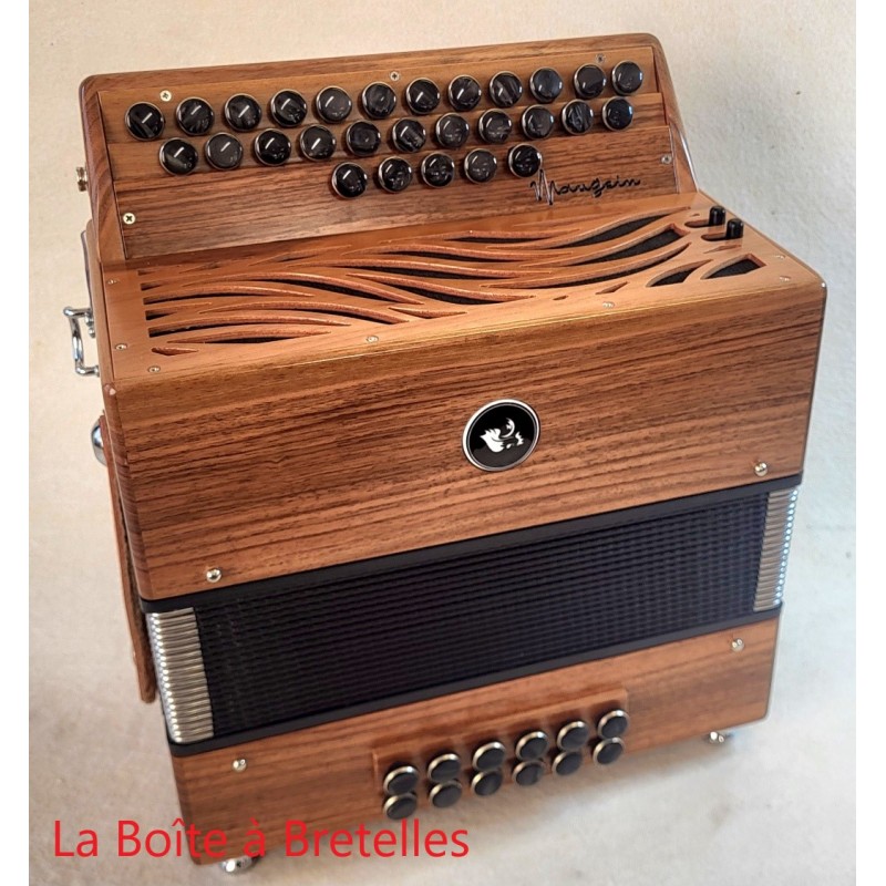 Les accordéons Maugein ont de multiples options (registres main gauche, bois, boutons, gorge au clavier chant, tonalités, etc...) pour plus d'infos sur les prix, merci de nous contacter.