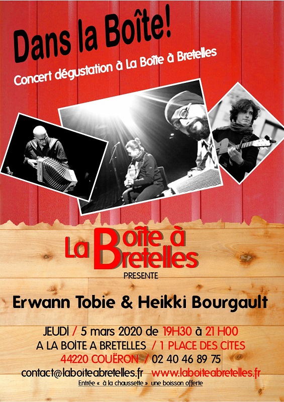 Prochain concert "Dans la Boite" avec le duo Erwann Tobie & Heikki Bourgault Jeudi 5 mars 2020 COMPLET