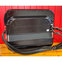 Accordéon chromatique avec boîte de résonance, anches "export" en bon état, diapason A 442 Hz.